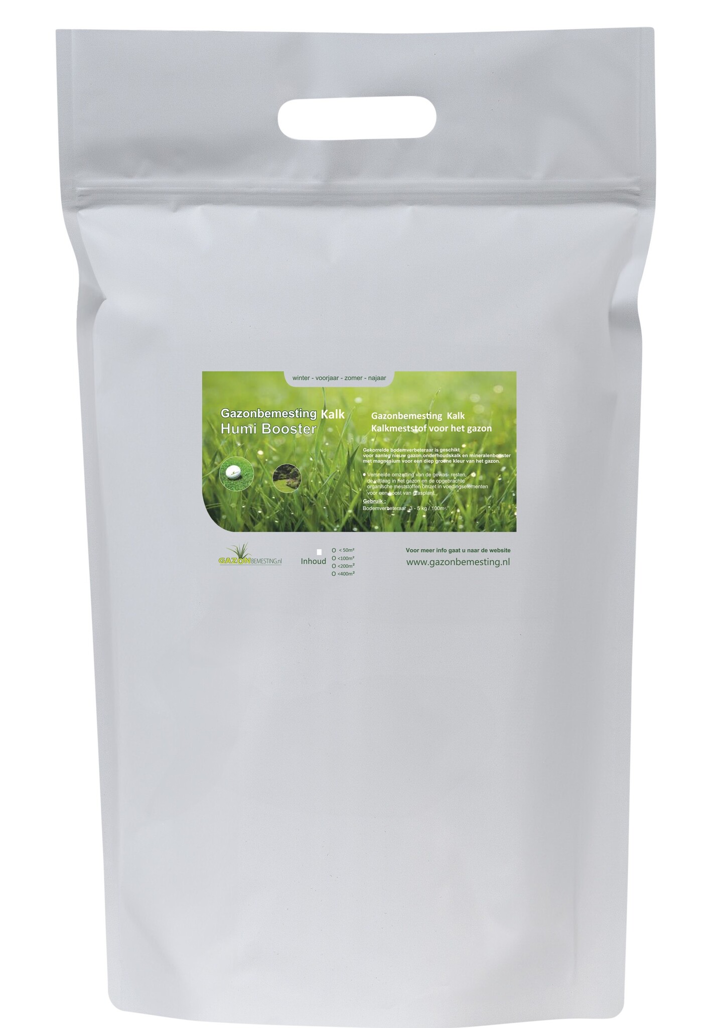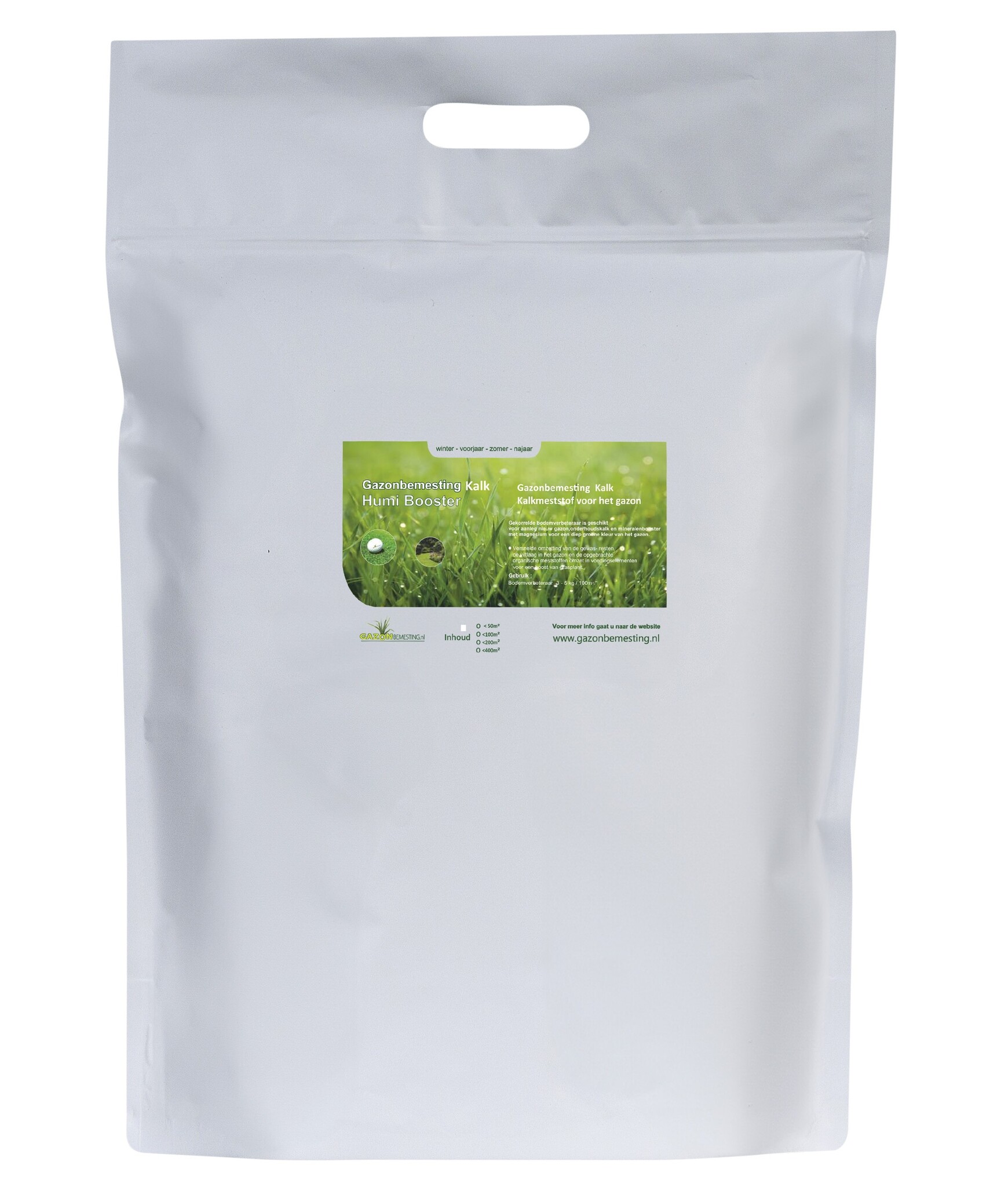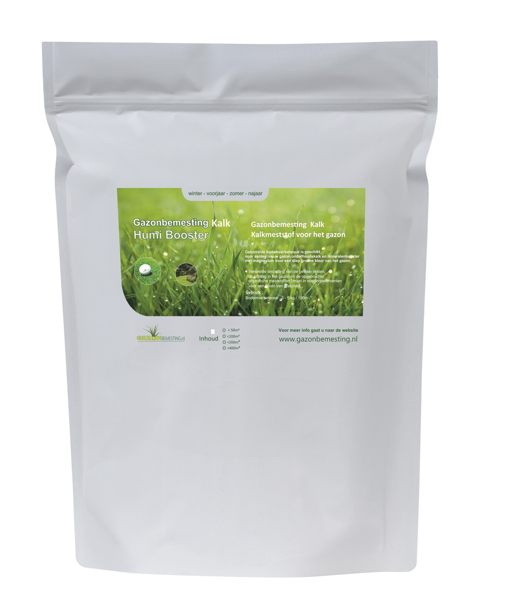 Tip: Begin in het vroege voorjaar (februari/maart) het seizoen met HumiBooster Kalk voor een goede start van het gazon. Na het strooien van de HumiBooster is het goed om 2 a 3 weken te wachten voor het strooien met de voorjaarsbemesting voor de juiste balans. Strooi zowel de kalk als de bemesting als het vorstvrij is voor een optimale werking van de bemesting.