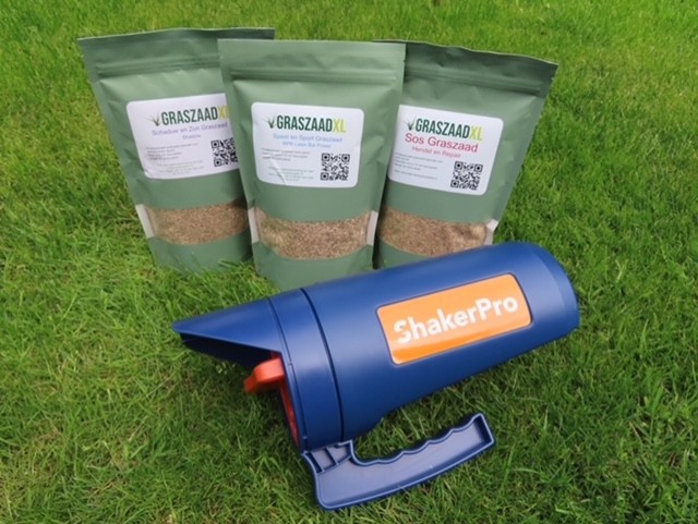 Graszaad XL 3-in-1 voor het doorzaaien van kale en droogteplekken + Shaker Pro ICL